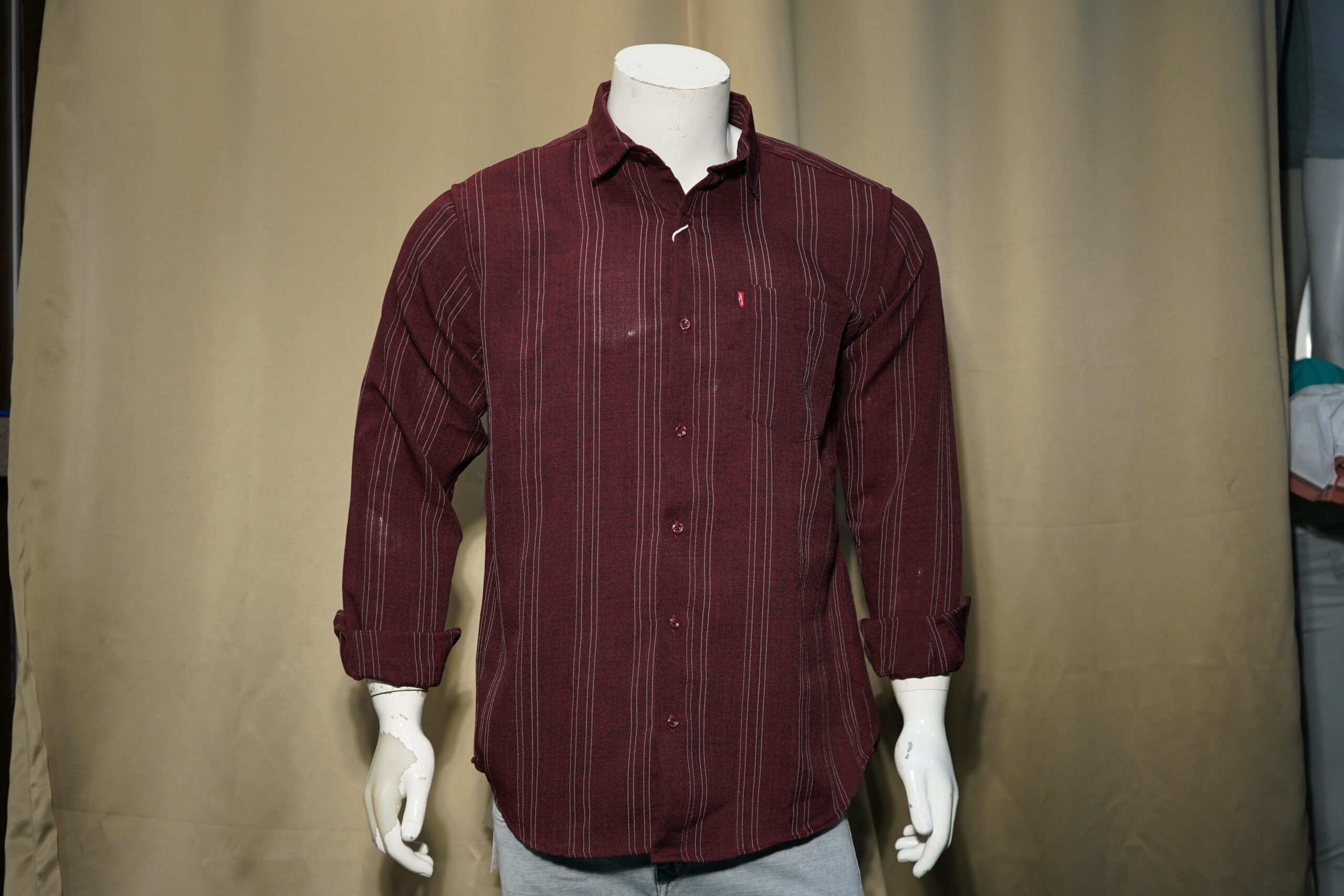 • Premium Cotton Striped Maroon Shirt – Style Meets Comfort