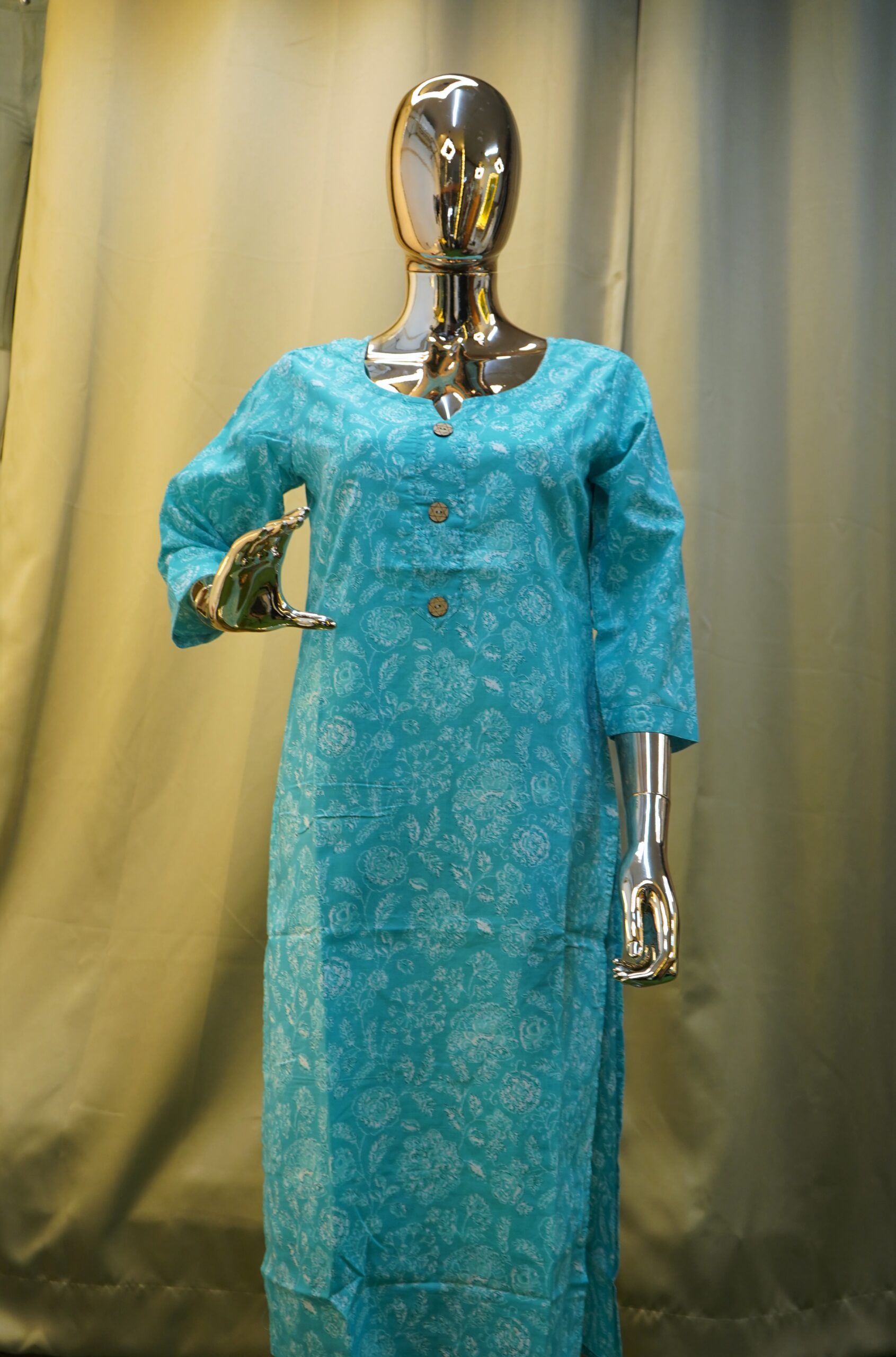 • Soft pure cotton side open kurthi for comfortable everyday wear.